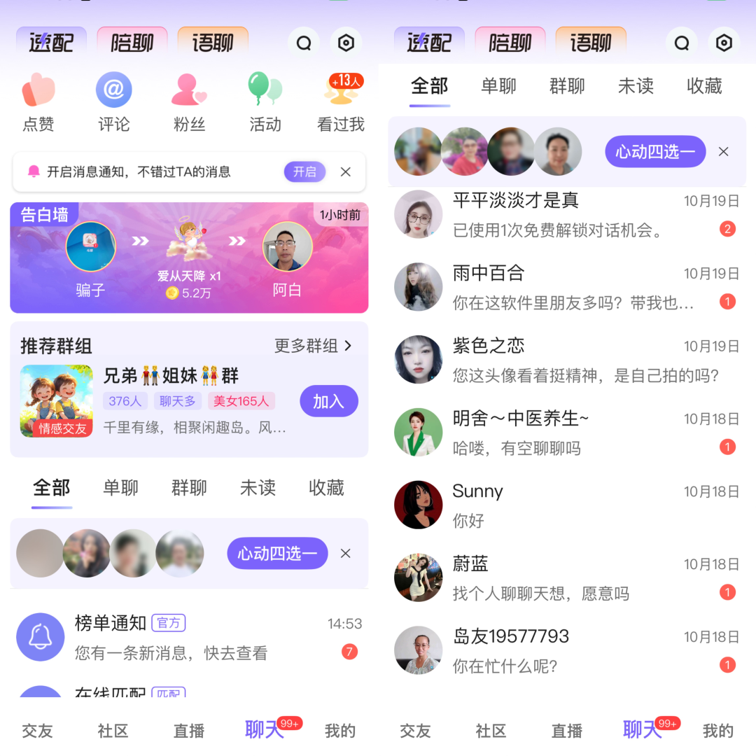 - 情感与社交需求:这是最核心的需求。用户渴望通过平台排解孤独、寻找志同道合的伙伴,进行深入交流。因此,一对一聊天、群组互动等功能备受欢迎,部分单身用户也有寻找伴侣的需求。