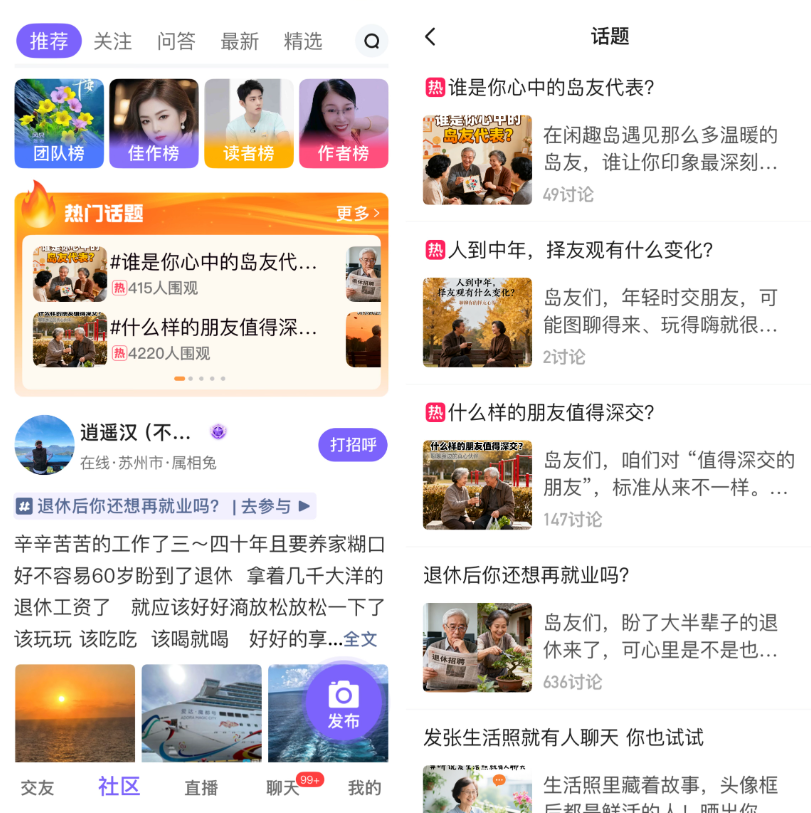 今天,就带大家一起看看这款在中老年群体中爆火的社交App——闲趣岛。