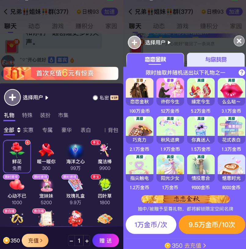 ②虚拟礼物与道具:可以购买和赠送虚拟礼物,用于表达情感和互动。