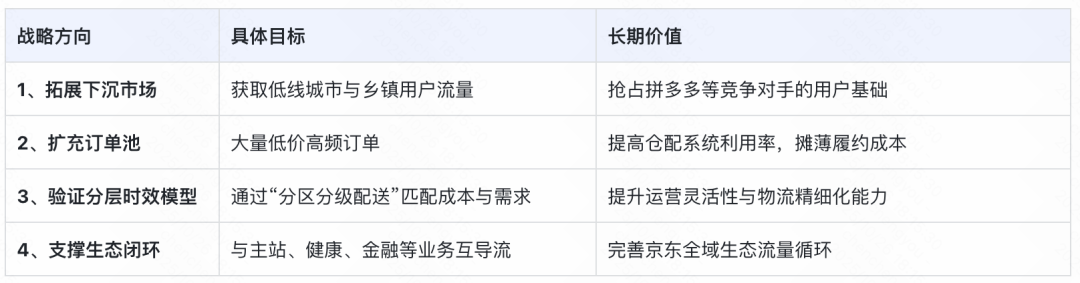 - 与美团/饿了么差异化竞争:京东的武器不是低价补贴,而是“更高时效+供应链直连(生鲜/自有商品)”,从而把外卖作为“物流密度+仓网利用”的延伸