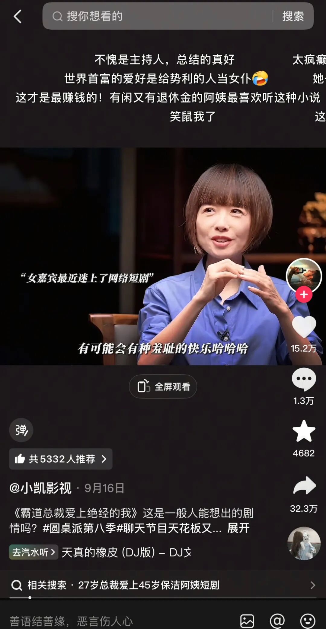 秦海璐那句“听霸总,比看霸总好,因为看霸总会觉得他油腻,听霸总在脑子里是帅哥”,更是直接冲上热搜。