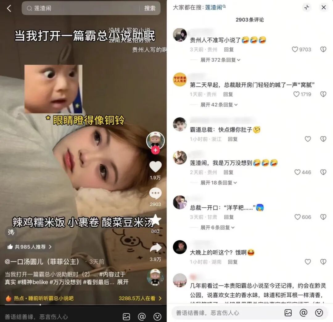 抖音、小红书、微博等社交平台,更是霸总小说的快乐老家。很多创作者把小说情节、抓马台词、反转剧情搭配在一起,想停下都难。