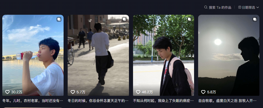 深挖账号内容,可以看到其构建了一种极具辨识度的“反完美”内容风格。