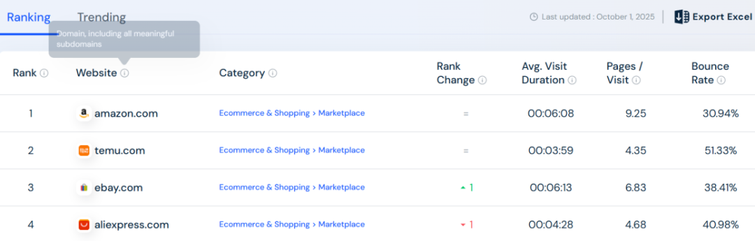 多多跨境TEMU今年以来虽然挫折不断,但其全球第二的排名丝毫未动。据“similarweb”统计数据,今年9月,TEMU的网站访问量仅次于亚马逊。
