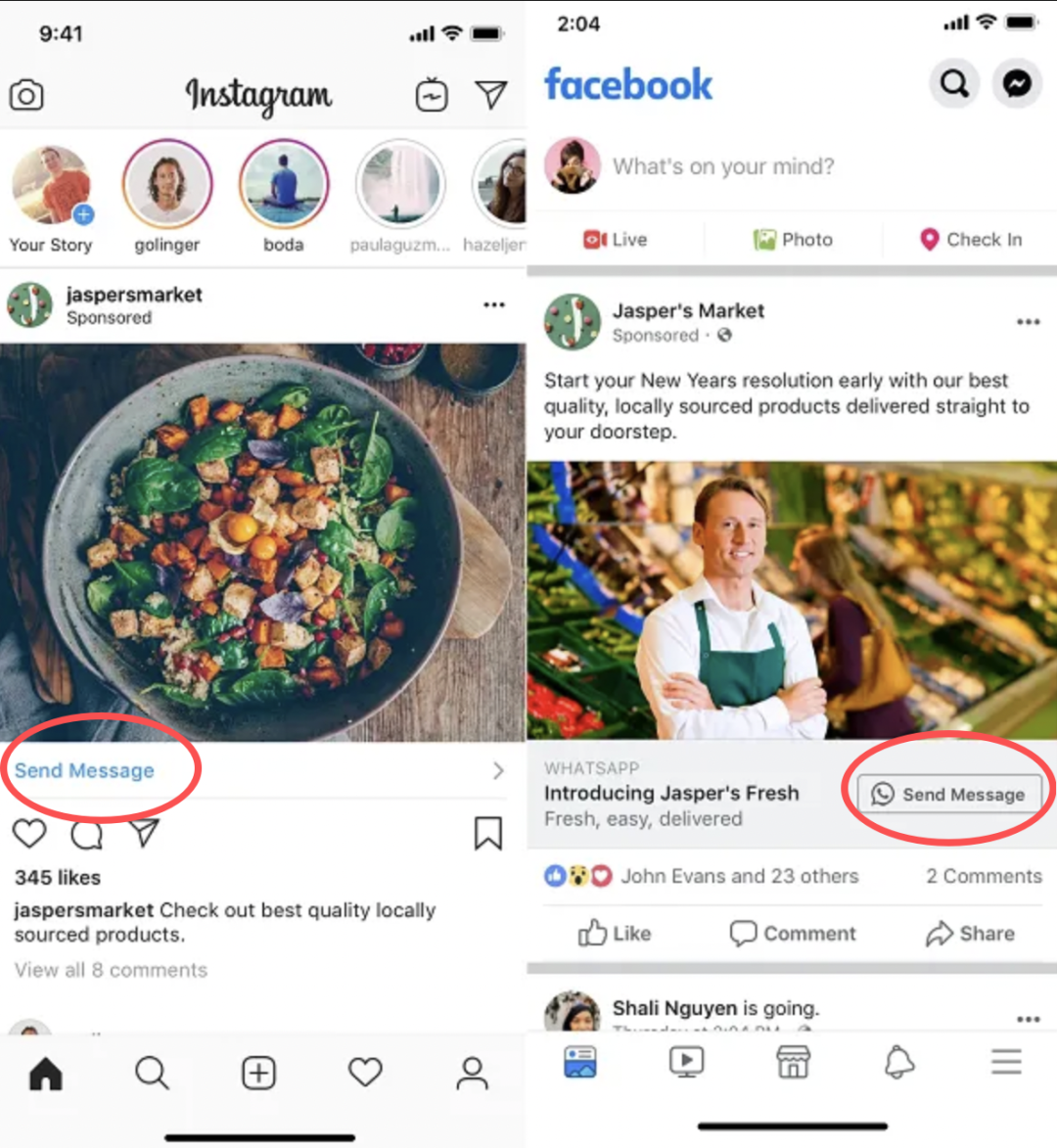 另一方面,Instagram上的广告也在强化“对话意图”,用户一点击,就直接进品牌私信,不需要再跳转到外部页面。