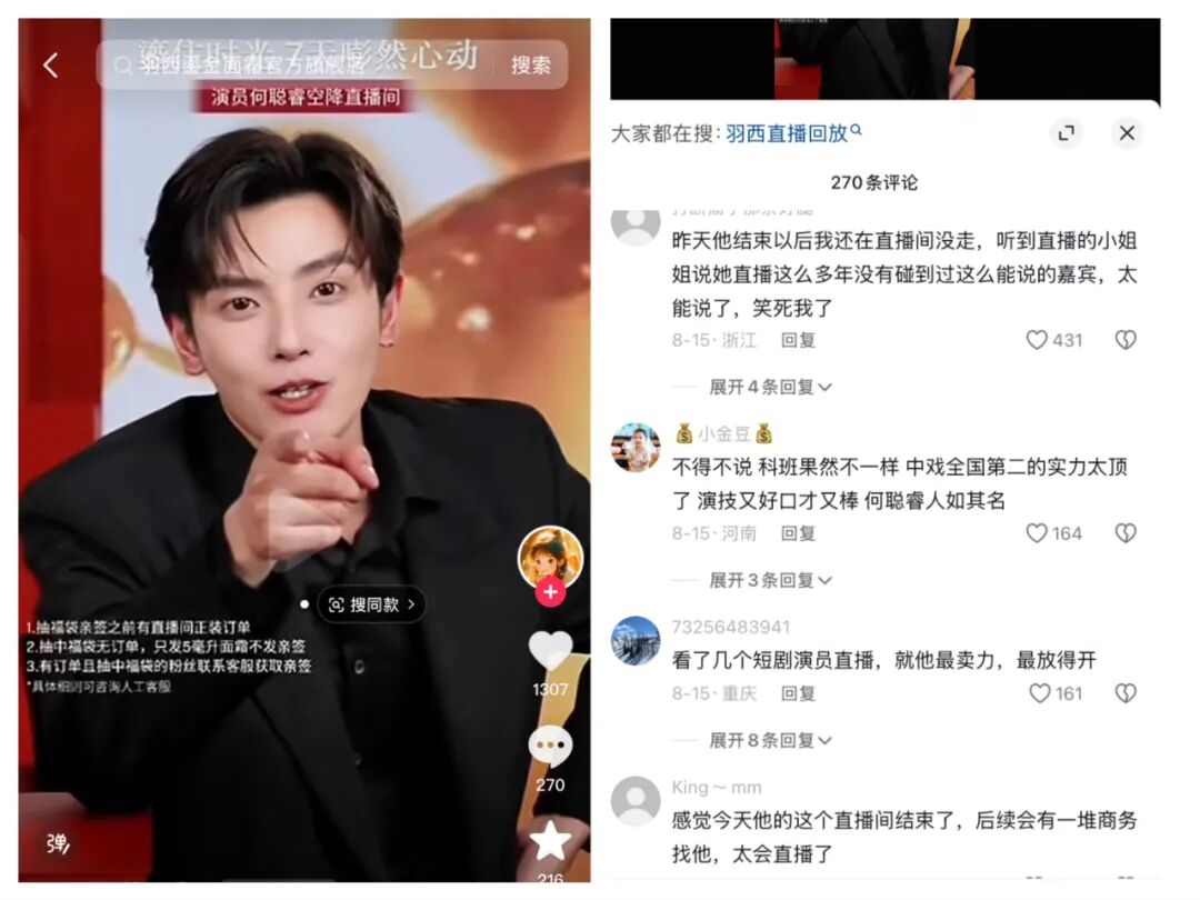 这场直播让更多人看到了何聪睿除了演技之外的口播能力和控场能力,以及具备成为多栖艺人的潜力,评论区就有人说“感觉直播结束后会有很多商务找来”。