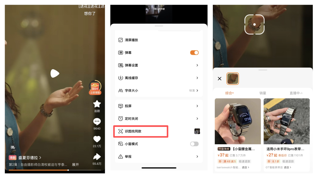 近日,红果短剧在内测带货功能,用户在观看短剧时,暂停会自动弹出“搜同款”提示,或点开右上角“识图找同款”,能直接跳转到抖音商城。