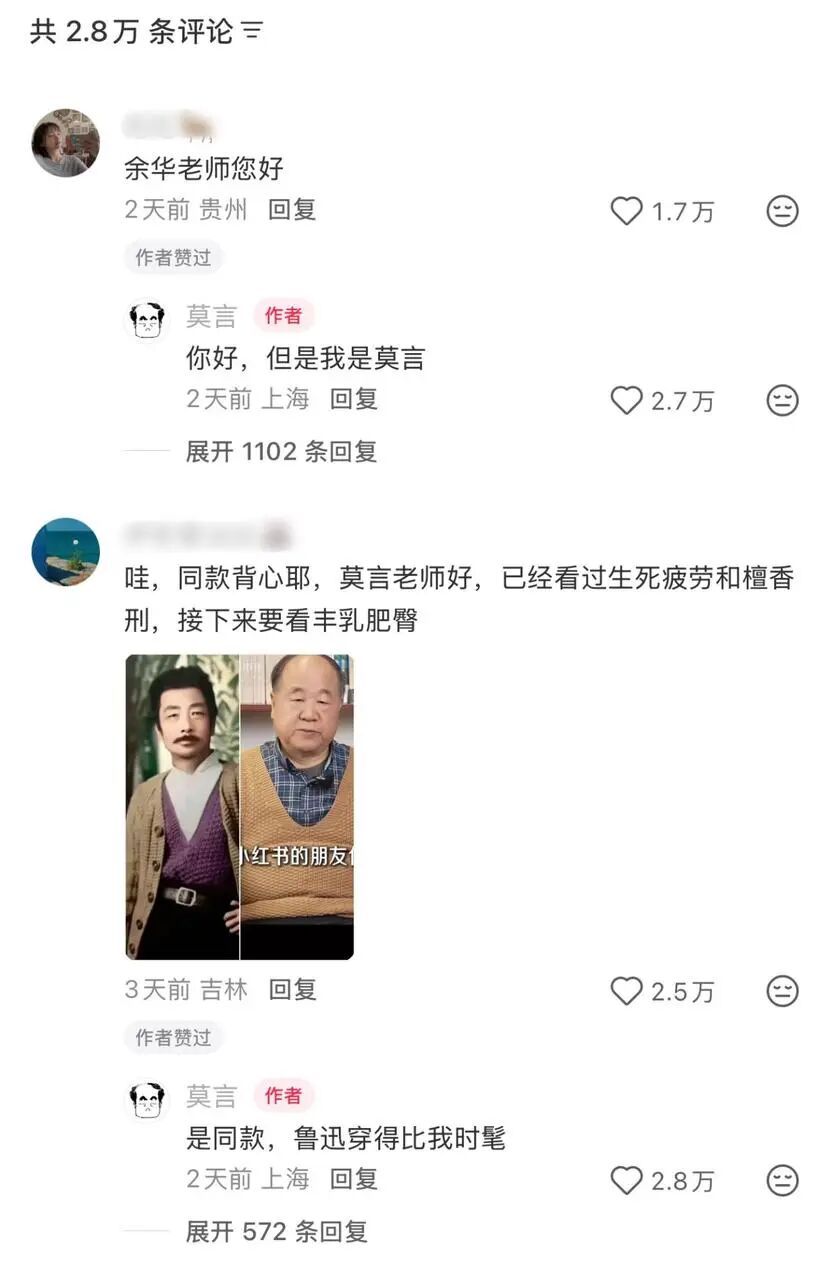 现在,莫言可以直接在评论区回复你,这种即时的、平等的对话,让“文学大师”从神坛走向了日常。