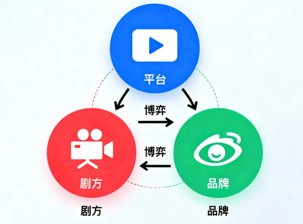 这就形成了一个典型的「三角博弈」:平台掌握流量和技术中枢,有最大话语权;剧方贡献内容,需要一套有效的激励机制;品牌出钱,需要看到更加强劲的回报曲线。