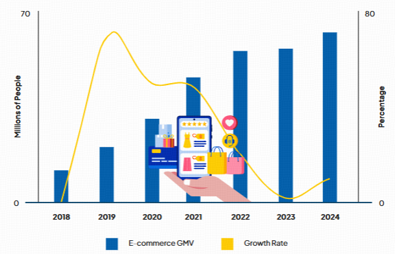 以印度尼西亚为例,其电子商务交易总额成交情况如下图所示: