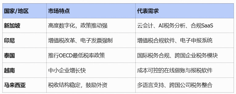 以新加坡为代表的高收入经济体,构成了东南亚财税软件市场的标杆板块。