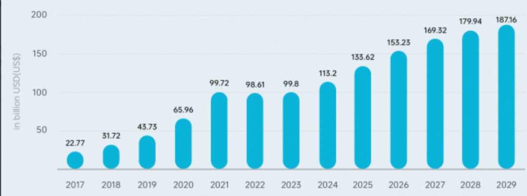 Statista数据显示,2025年东南亚电商市场收入将达到1336.2亿美元,预计2025年至2029年复合年增长率为8.79%,到2029年将达1871.6亿美元。预计到2029年,东南亚电商用户数量将增至2.597亿,用户渗透率也将从30.5%提升至39.8%。