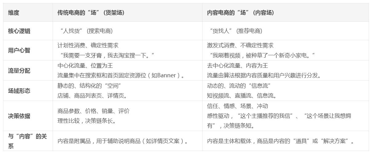 “内容场”并非对传统“场”的兼容,而是一次根本性的范式转移,它重构了用户与商品之间的连接方式。