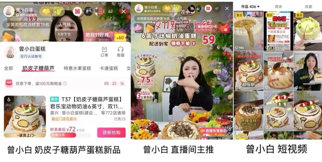 曾小白蛋糕一周内完成了“奶皮子糖葫芦蛋糕”的新品研发、商家预售和短视频、直播同步上线推动流程,周销量大涨。