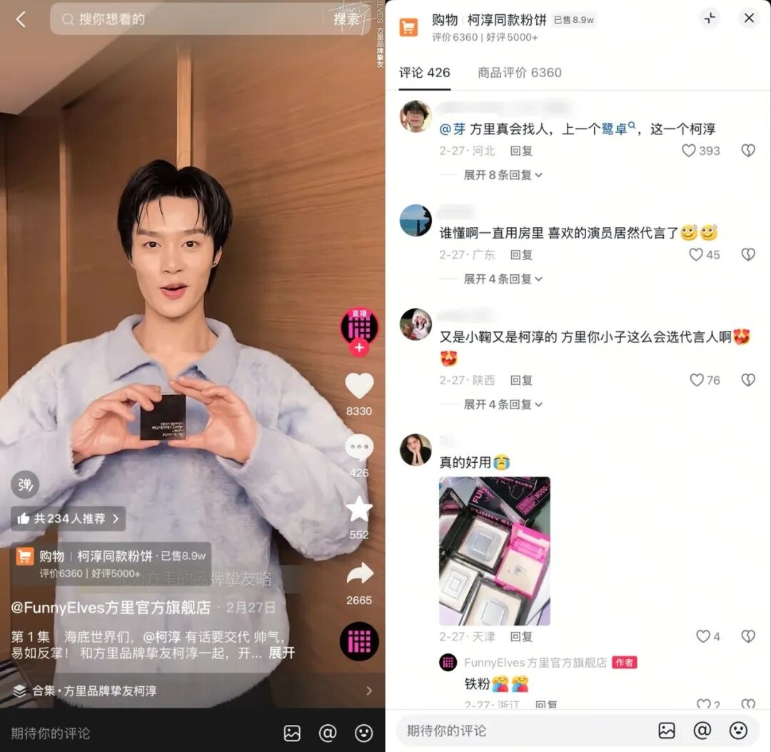 “短剧一哥”柯淳出现在十月稻田直播间;短剧演员何健麒在Babycare直播间带货;据新播场报道,马小宇为唐魅可带来近180天最高销售额,羽西品牌更是采用“人海战术”,一口气邀请7位短剧男演员轮番上阵……