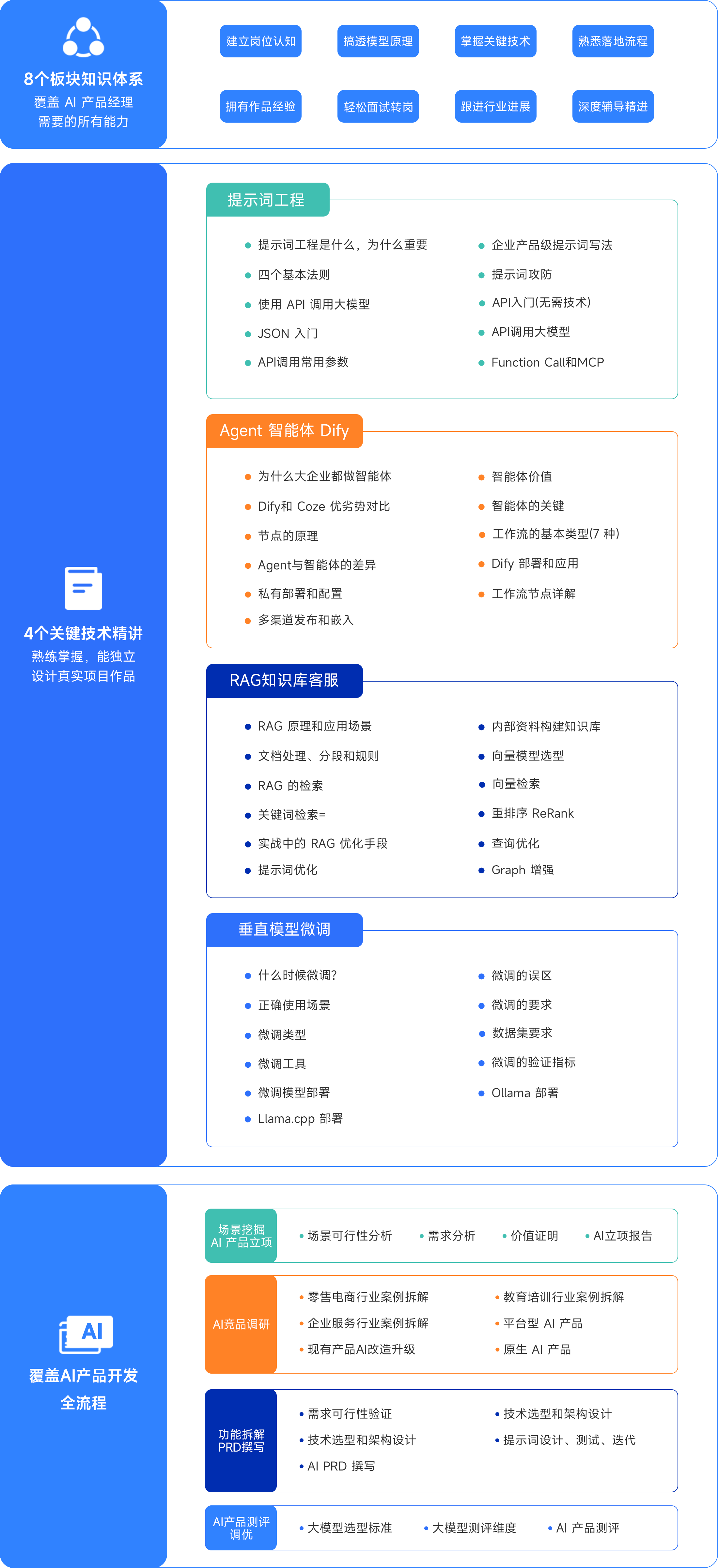 如果你技术专业毕业/懂技术/有一点产品经验,却遇到行业洞察力不足、业务分析能力弱、没有AI产品落地经验等困难。想转型产品经理/AI产品经理却无处下手?