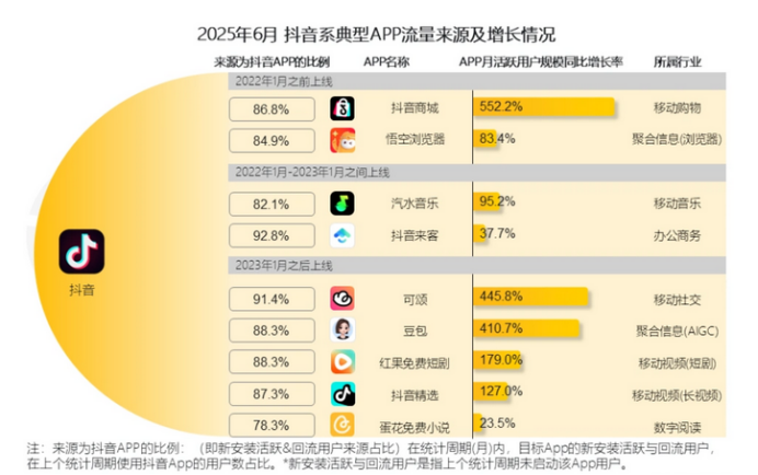 数据也证实了这一点:截至2025年6月,汽水音乐82.1%的流量来源于抖音。