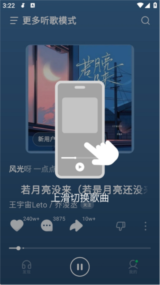 在产品端,汽水音乐几乎完全复用了抖音的交互范式。其播放界面采用全屏沉浸式设计,上下滑动切歌的操作与抖音刷短视频的行为高度一致;歌曲推荐以单曲流形式呈现,依赖算法实时推送,而非用户主动搜索或选择歌单,这与抖音的内容分发机制如出一辙。