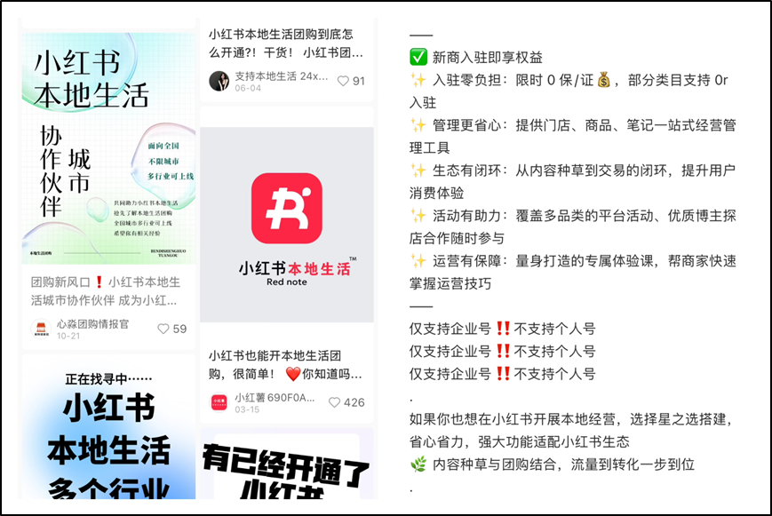 近期,小红书上涌现大量本地生活服务商发布的招商信息,承诺为入驻商家提供从流量扶持、权益激励到一站式运营的全链路服务——