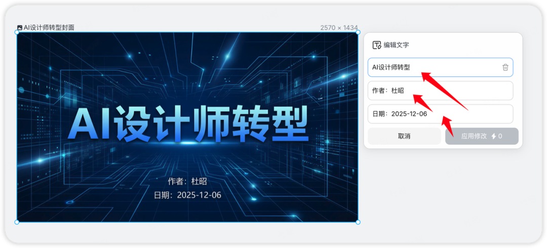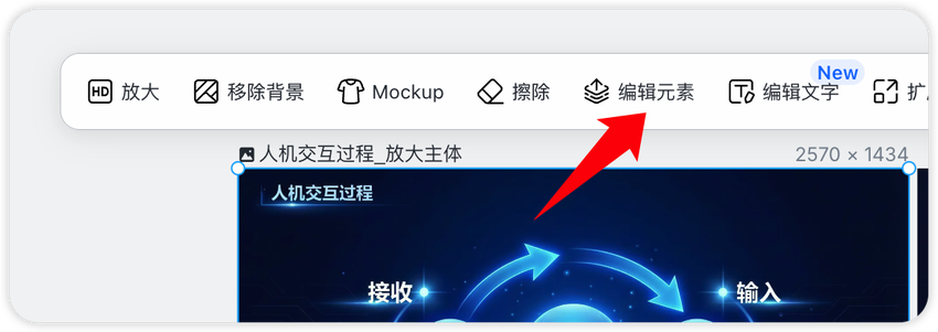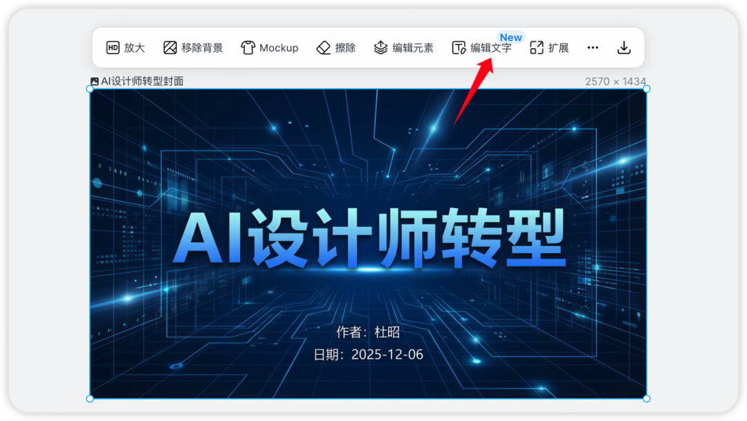 在制作PPT的过程中,我就用到了几个新上线的功能。第一个非常常用的是编辑文字功能。画PPT的时候,很多情况下需要对文字进行微调。但是对于其他的生图产品来说是没有办法只修改文字的。