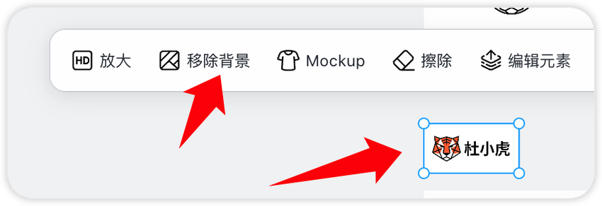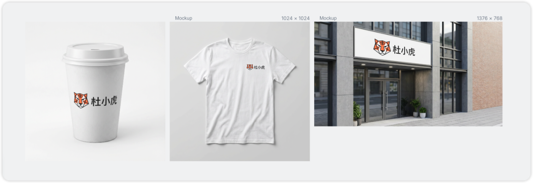 这只小老虎就是我们所说的logo。小老虎被拖入到纸杯、T恤、门头的mock up内部之后,会跟随位置变化,自动调整角度,可以只显示出来一部分可以是侧面、正面等等多角度的。