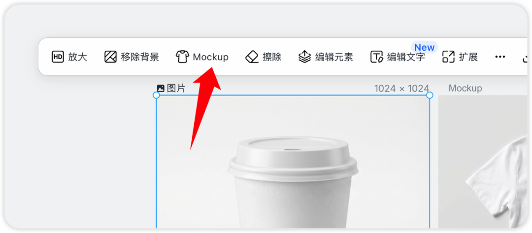而在Lovart中实现起来就简单多了,选择一张图片后,点击mock up按钮。