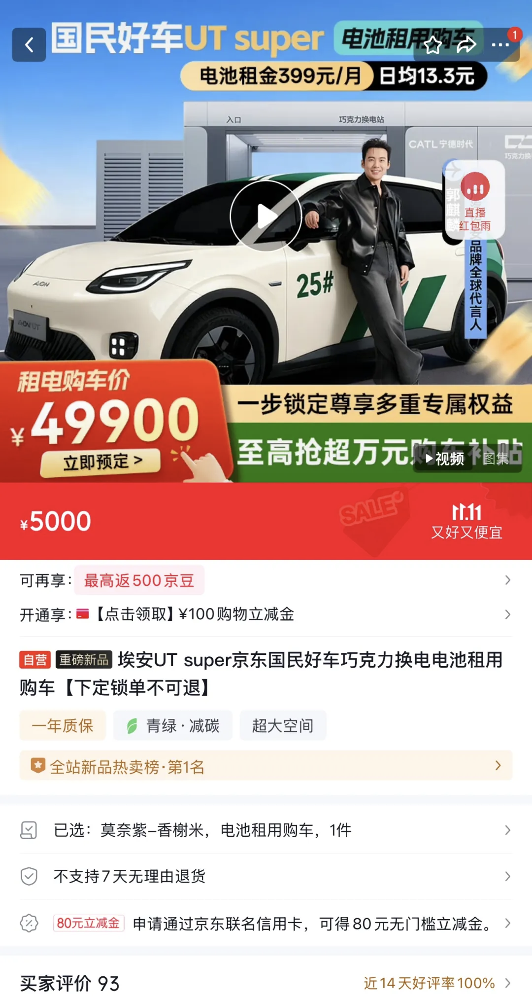 比如,天猫汽车官方旗舰店,最近卖出了首辆整车奔腾小马,并已完成了线下交付工作;另一边,京东联合广汽、宁德时代打造的埃安UT Super,不久前也正式上市。
