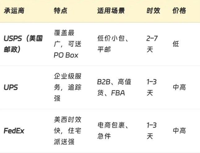 - 快递派送:如UPS、FedEx等,时效快,但成本高;
