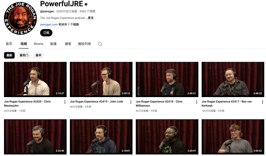 Joe Rogan的帝国,正是建立在YouTube这套尊重长视频、奖励完播率的推荐与搜索机制之上。