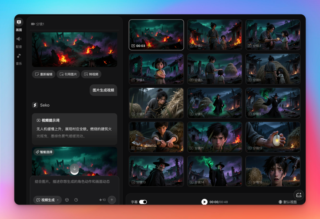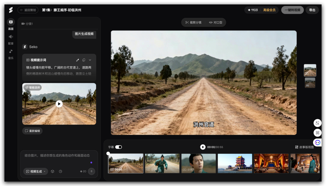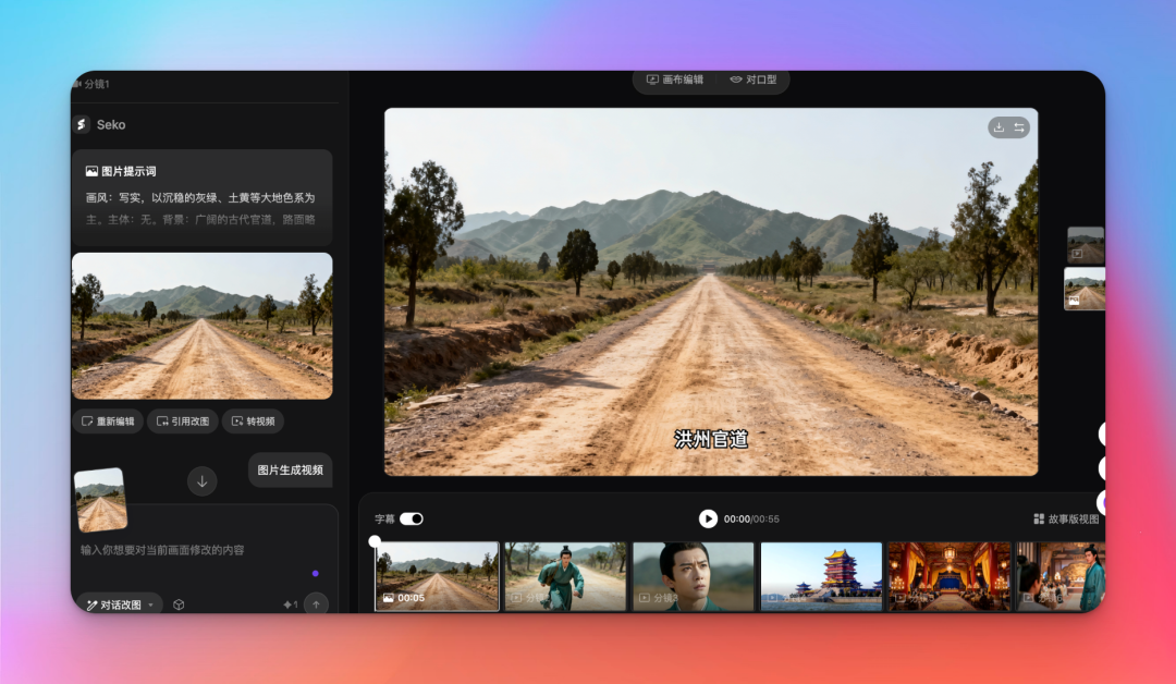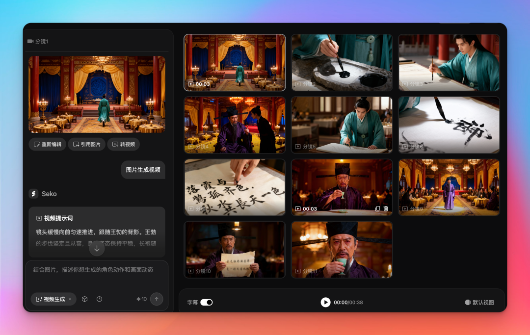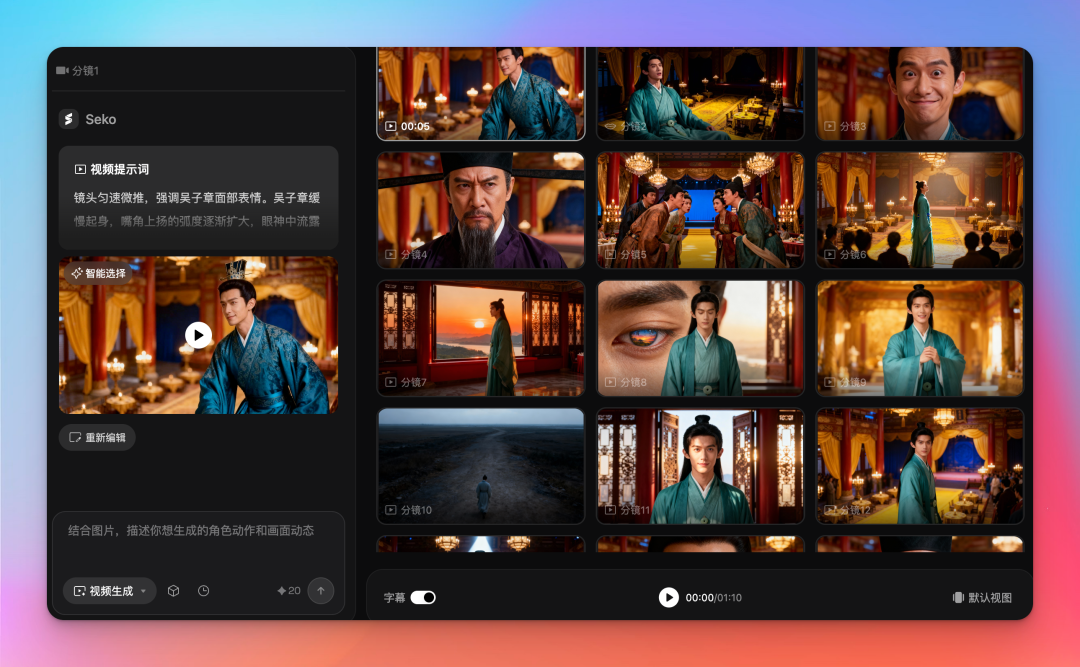 我发现 Seko 在多集中依旧能保持上下文记忆,全过程都能保持每集中剧情对应的主体和场景调用的参考图一致,这样才不至于每集生成的人物和场景的随机。