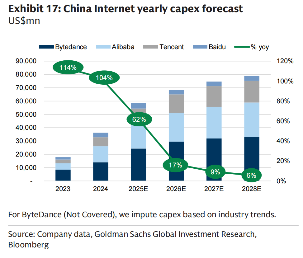 实际上,2023-2028年,中国资本开支最大的公司会是字节跳动。未来三年它的资本开支预计达到6100多亿,比阿里的4600亿还高出一大截。