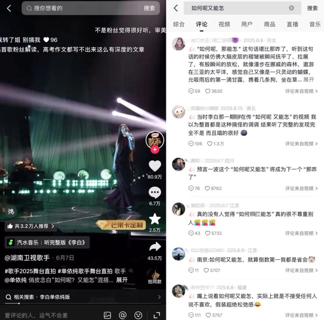 在抖音上,#如何呢又能怎 话题播放量超过11.4亿次。有人配上无奈的表情包,有人配上搞笑的场景,还有人把它做成了BGM。