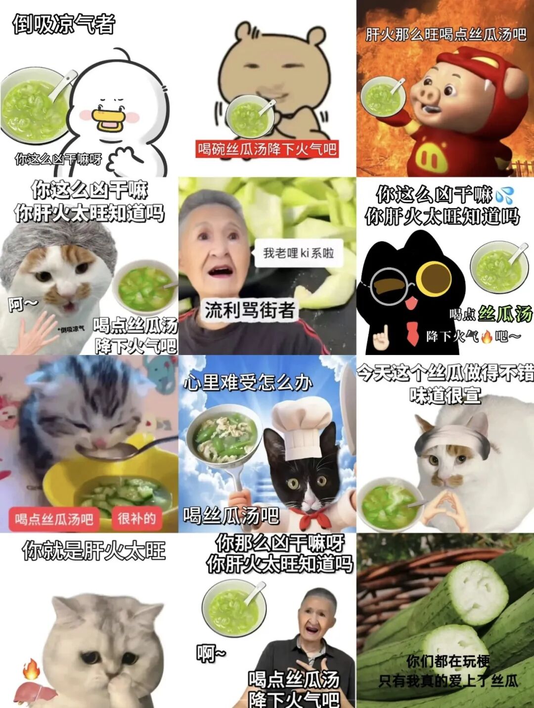 为什么是丝瓜汤?可能是因为丝瓜汤听起来清淡、温和,有一种治愈的感觉。也可能是因为这个梗本身就带着一种荒诞感,明明是在安慰人,却用了一个看似毫不相关的食物,这种反差反而让人觉得可爱。