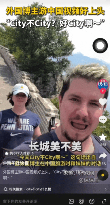 外国博主@保保熊 凭借着魔性的City不City走红。在短视频平台上,它迅速完成了从土味到潮流的华丽转身,掀起一股City风。