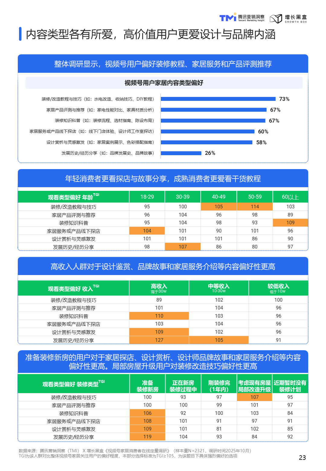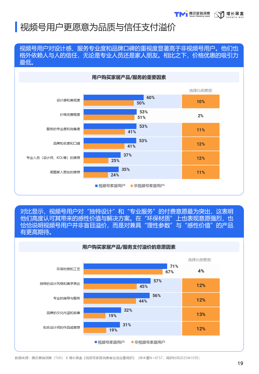 近期,我们联合腾讯营销洞察(TMI)发布了《视频号家居消费趋势洞察与人设营销指南》。通过对4757位家居消费者的深度调研,我们发现了一个显著的趋势:在微信视频号生态中,通过人设构建的深度关系,正在成为破解信任难题、连接高价值人群的破局点。