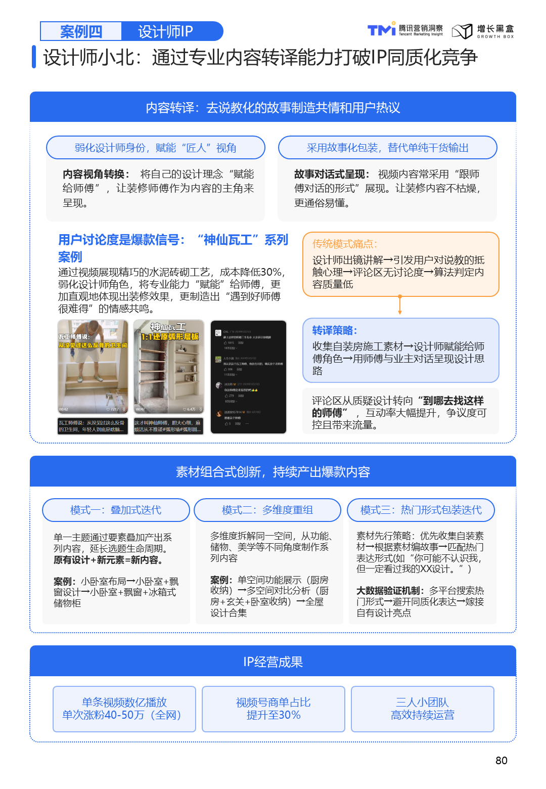 - 设计师/工长 IP(KOS): 解决专不专业的问题。他们通过避坑指南、工地实拍、工艺讲解,缓解用户的知识焦虑,提供情绪价值,是交付质量的证明者。