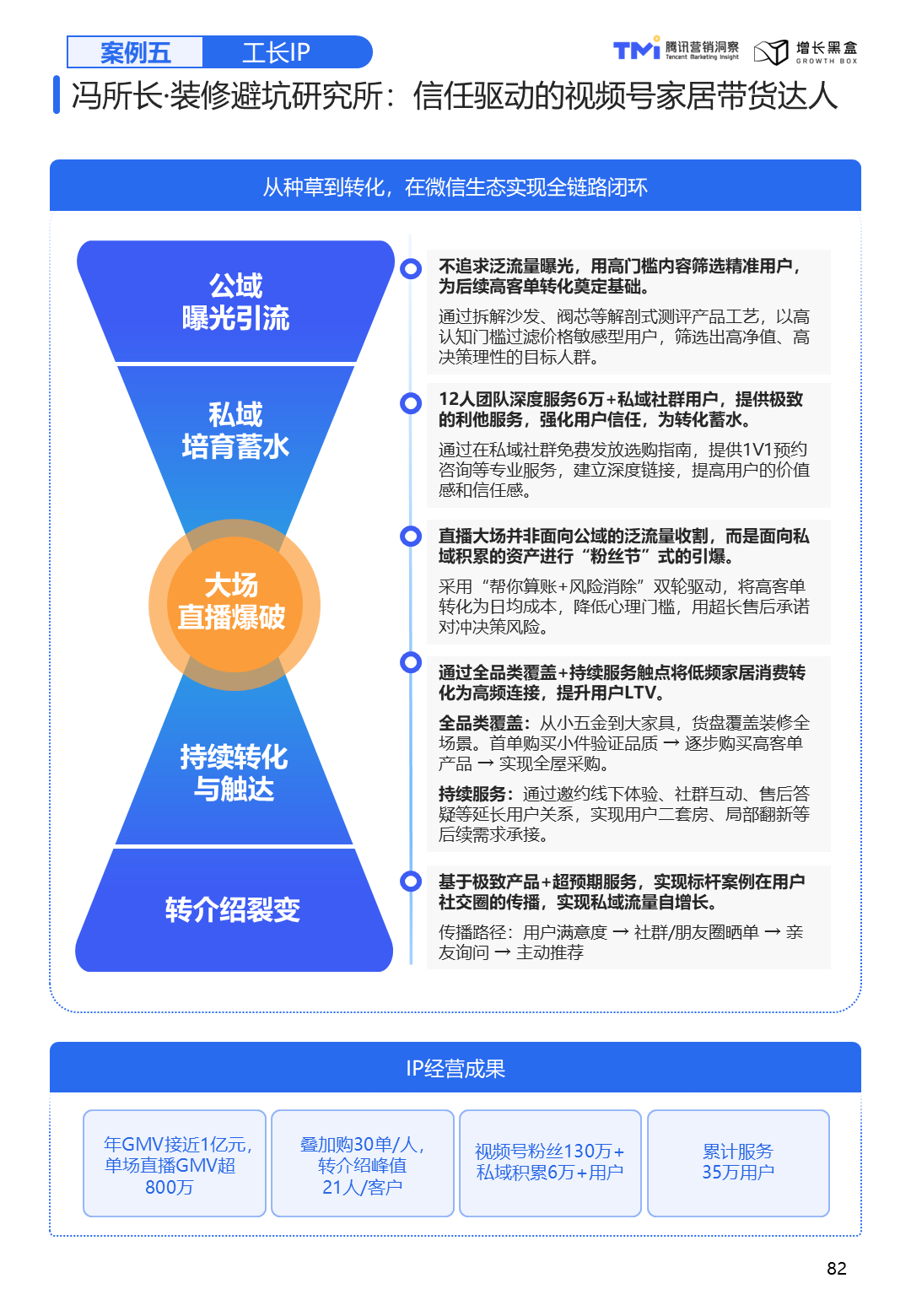 冯所长·装修避坑研究所提供了一个极其硬核的样本。作为工长IP,他创下了年GMV接近1亿元、单场直播超800万的战绩,而这一切的核心在于他对公私域流量的精密运营。