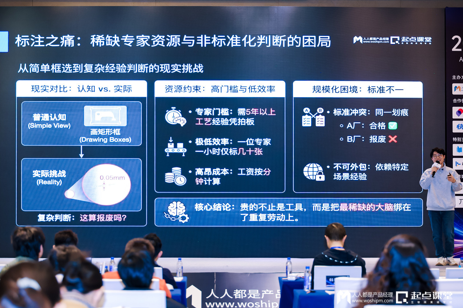 刘凯老师分享了ViMo平台的破局之道:通过全流程自动化,将老师傅的经验转化为系统算法。从缺陷自动生成到智能标注,工业智能化必须从“项目制救火”走向“平台造能力”,把判断质量的尺子从人脑交给算法。