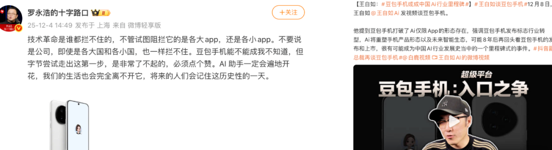 从以上这些角度分析后得知,豆包未来必须自己做手机硬件终端(不是收购了锤子手机吗?)亦或必须拥有绝对的话语权。