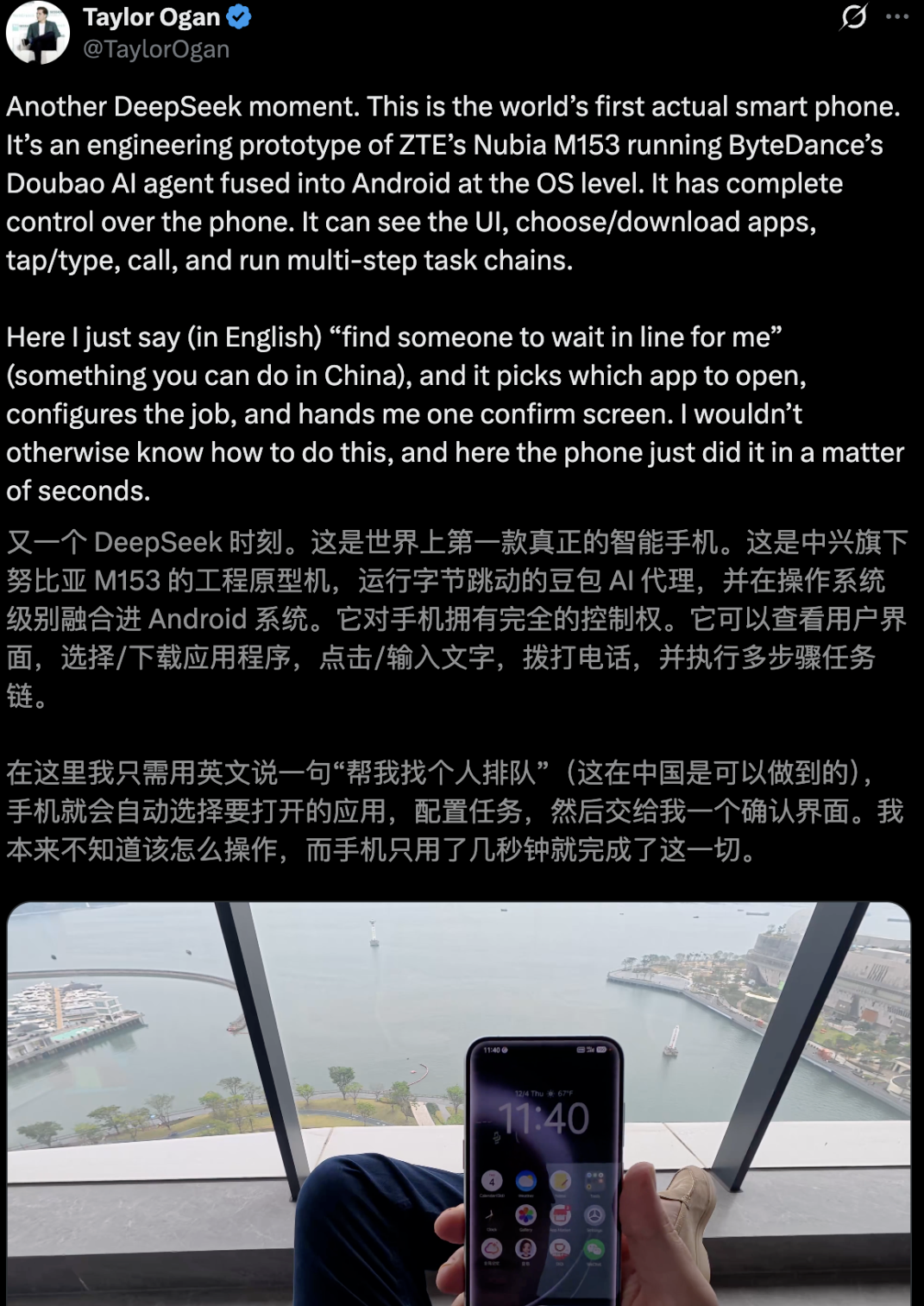 小米、华为、OPPO 甚至 iPhone,来啊,你们都把手机系统底层的操作权限和 AI 助手外包给我,让我豆包来替你们解决用户需求。