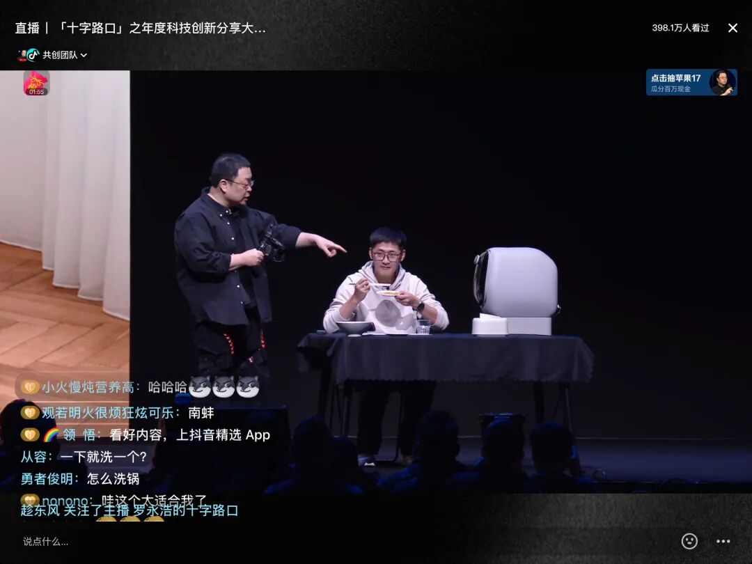 下半场,老罗开始聊抖音精选,聊AI,聊豆包。