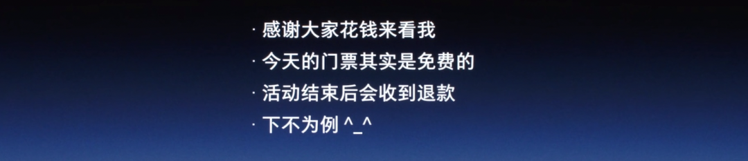 他说,今天的门票钱,一百六十多万,全退。大家免费看了一场“笑话”,还拿到了退款。这钱,他自己掏腰包捐给公益。