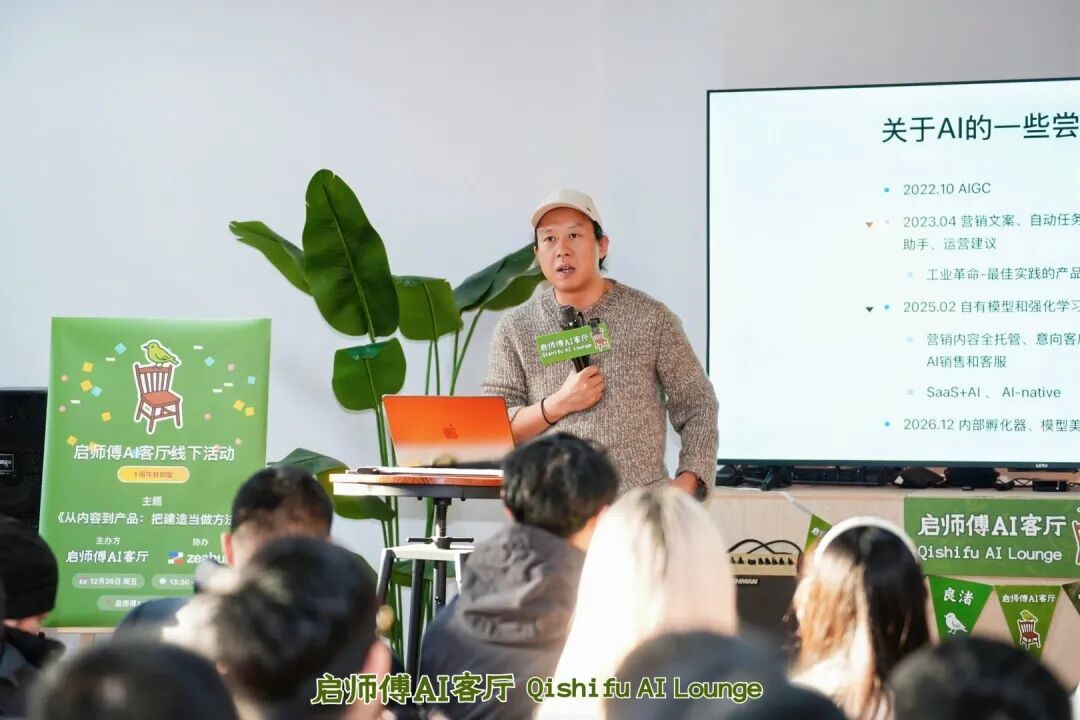 随着生成式人工智能及智能体技术在近三年内快速演进,围绕“AI 应当如何被产品化、商业化与组织化”的讨论不断升温。然而,大量创业实践显示,单纯将 AI 作为能力插件嵌入既有 SaaS 框架,往往难以形成长期竞争优势。本文基于白鸦在“启师傅AI客厅”活动上的分享内容的系统性梳理,从企业角色定位、产品范式转移、商业模式演化与创业机会来源等维度,尝试构建一个用于理解当下 AI 创业战略选择的分析框架,以期为创业者提供更具结构性的判断依据。
