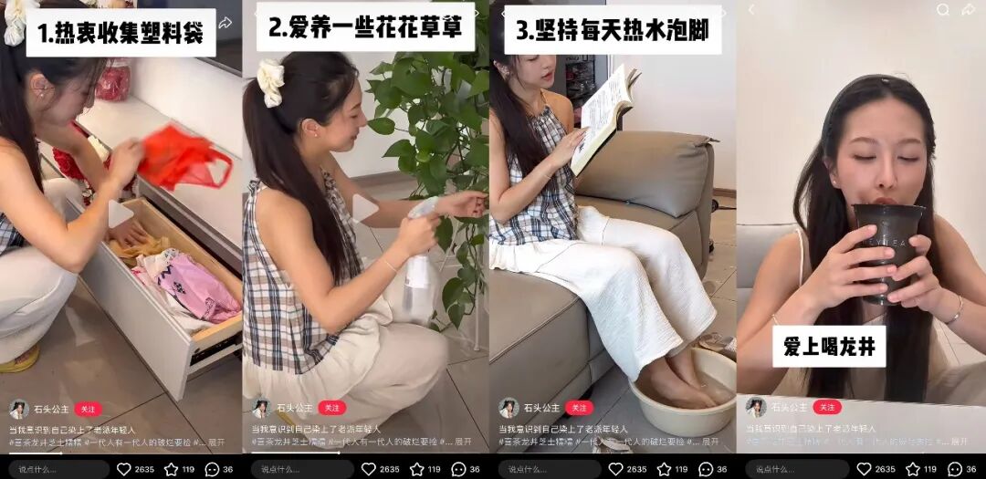 @石头公主 的笔记《当我意识到自己染上了老派年轻人》,没有硬广、没有夸张的滤镜,而是用日常切片呈现了老式人类的生活转向:热衷收集塑料袋、爱养一些花花草草、爱上喝茶、坚持每天热水泡脚等“症状”。