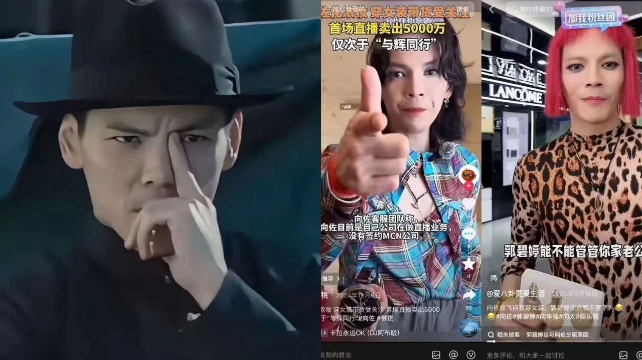 电影《门前宝地》,向佐凭借摸鼻梁,突然从硬汉变成了抽象男人。此后不久,抽象则愈发不可收拾,甚至身穿女装在直播间带货。