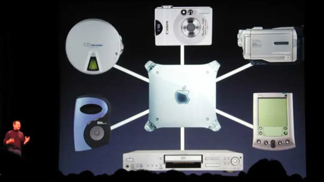 “We believe the PC, or more specifically the Mac, can become the ‘digital hub’ of our new emerging digital lifestyle.” (我们相信 PC,或者更具体地说是 Mac,能够成为我们新兴数字生活的“数字中枢”。)