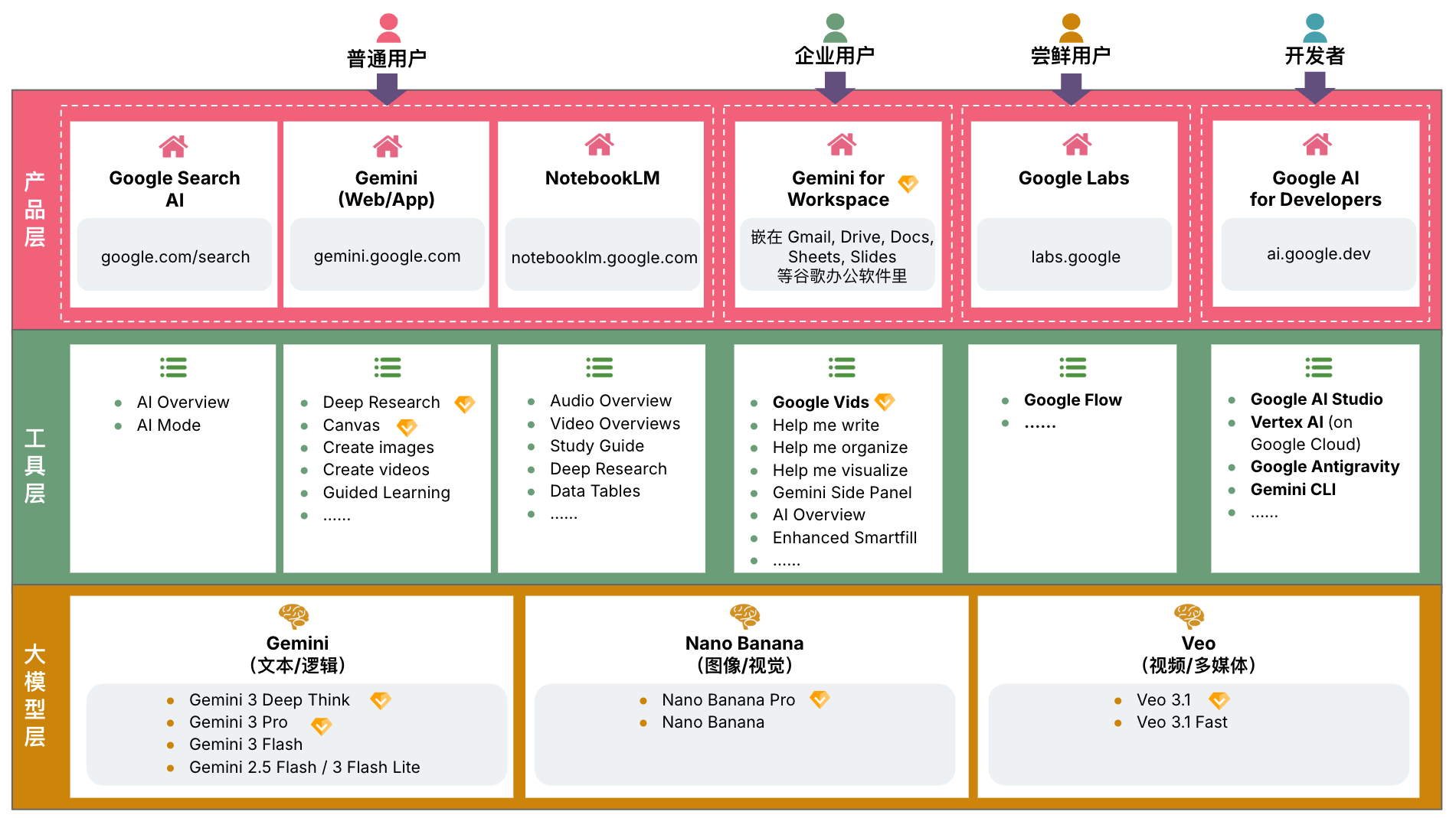 最后,如果你只记住一件事,那就是:谷歌 AI 不是一堆名字复杂的产品,而是一套分层清晰、各司其职的系统。