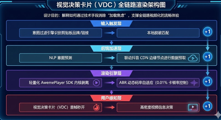 1. 视觉决策卡片 (Video Decision Cards, VDC) 与极速渲染引擎