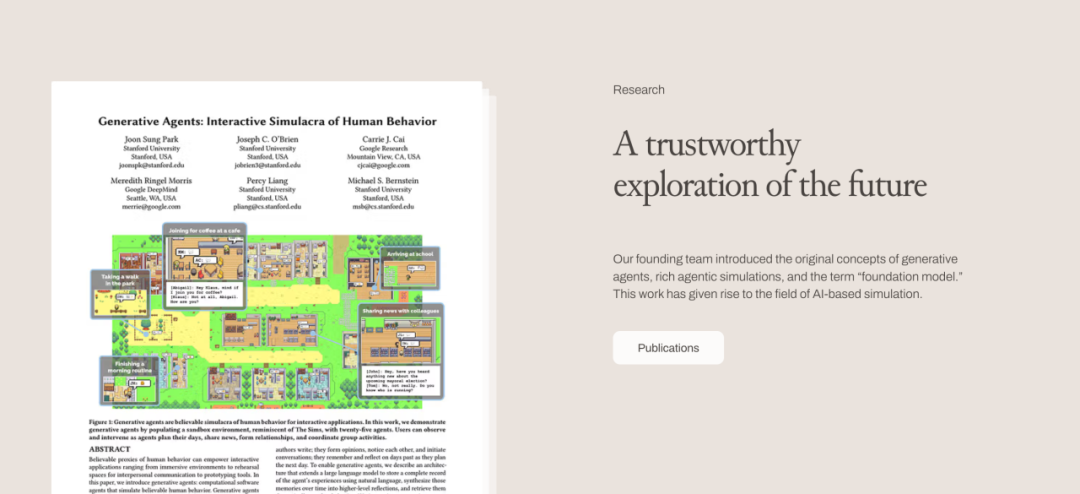 联合创始人Michael Bernstein、Percy Liang和Lainie Yallen都有着深厚的学术背景。特别值得一提的是Michael Bernstein,他是ImageNet项目的共同作者,这个项目为计算机视觉技术设立了基准,对整个AI领域产生了深远影响。更重要的是,这个团队引入了生成式agents的原始概念,创造了丰富的agent模拟系统,甚至”foundation model”(基础模型)这个术语都是他们提出的。可以说,他们不仅在技术层面有深厚积累,更在概念框架层面塑造了整个AI agent领域的发展方向。