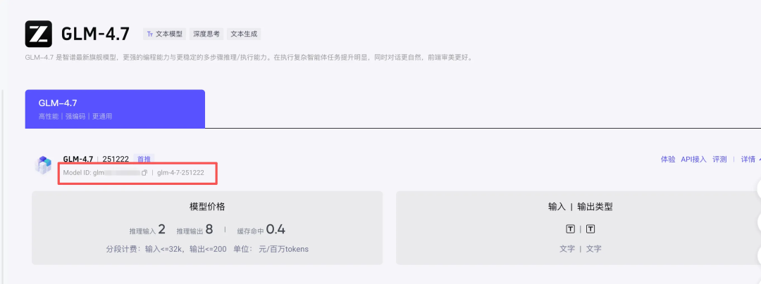点选模型的名称进入【模型参数】页面,获取其中的“Model id”,保存下来后面有用。
